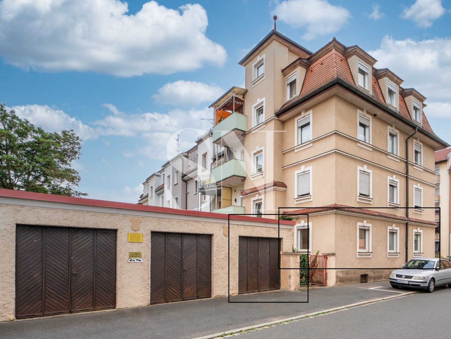 Die Wohnung ist im Hochparterre eines Mehrfamilienhauses mit nur vier Wohneinheiten gelegen. Die kleine Wohnanlage wurde 1928 erbaut und verfügt über einen Innenhof und Garagenstellplätze.