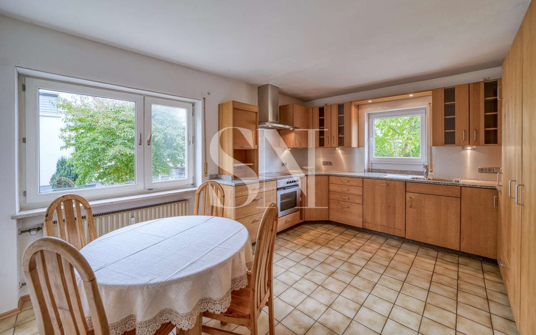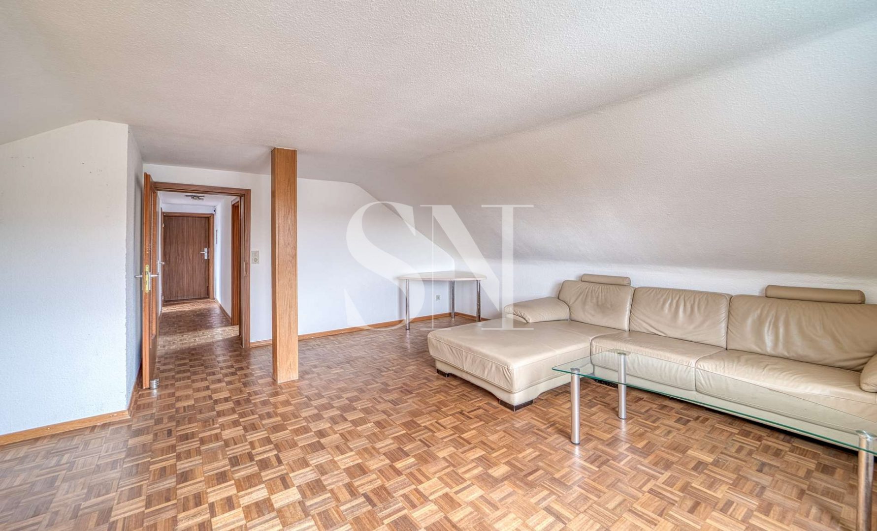 Zum jetzigen Zeitpunkt ist die Erdgeschosswohnung mit dem 1. Obergeschoss durch eine innenliegende Treppe verbunden. Das Erdgeschoss bildet hier den Mittelpunkt der Einheit. Auf ca. 87 m² erstrecken sich hier eine geräumige Wohnküche, ein großzügiges Wohnzimmer mit Terrassenzugang, ein Gästezimmer sowie ein Tageslichtbad. Im Obergeschoss befinden sich weitere vier Räume, wovon ein Zimmer einen Balkonzugang hat sowie ein weiteres Badezimmer. Über das Treppenhaus gelangt man in die gemütliche Dachgeschosswohnung mit ca. 51 m².