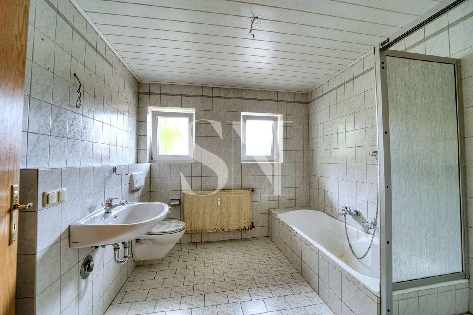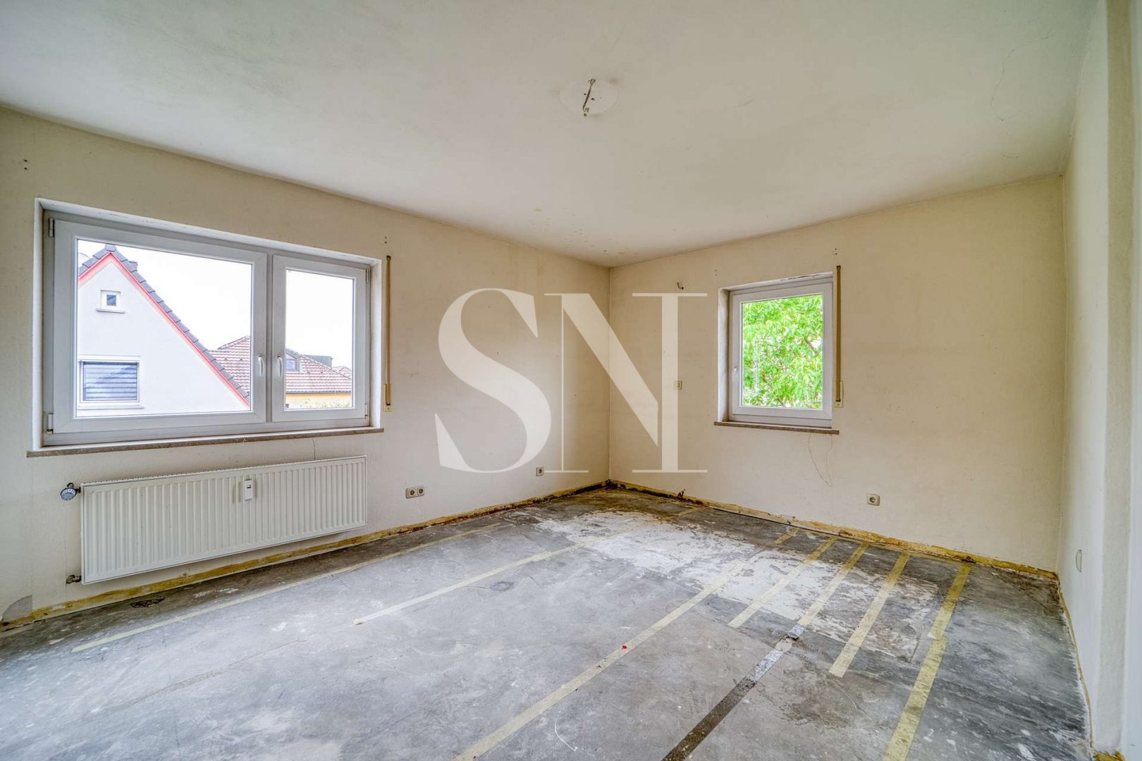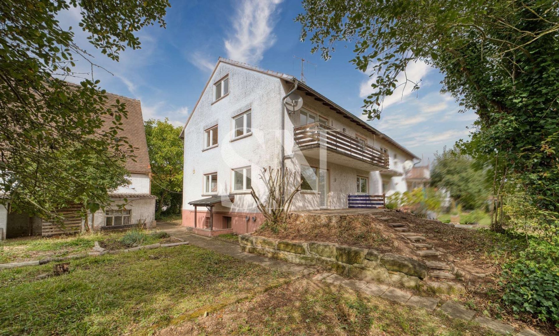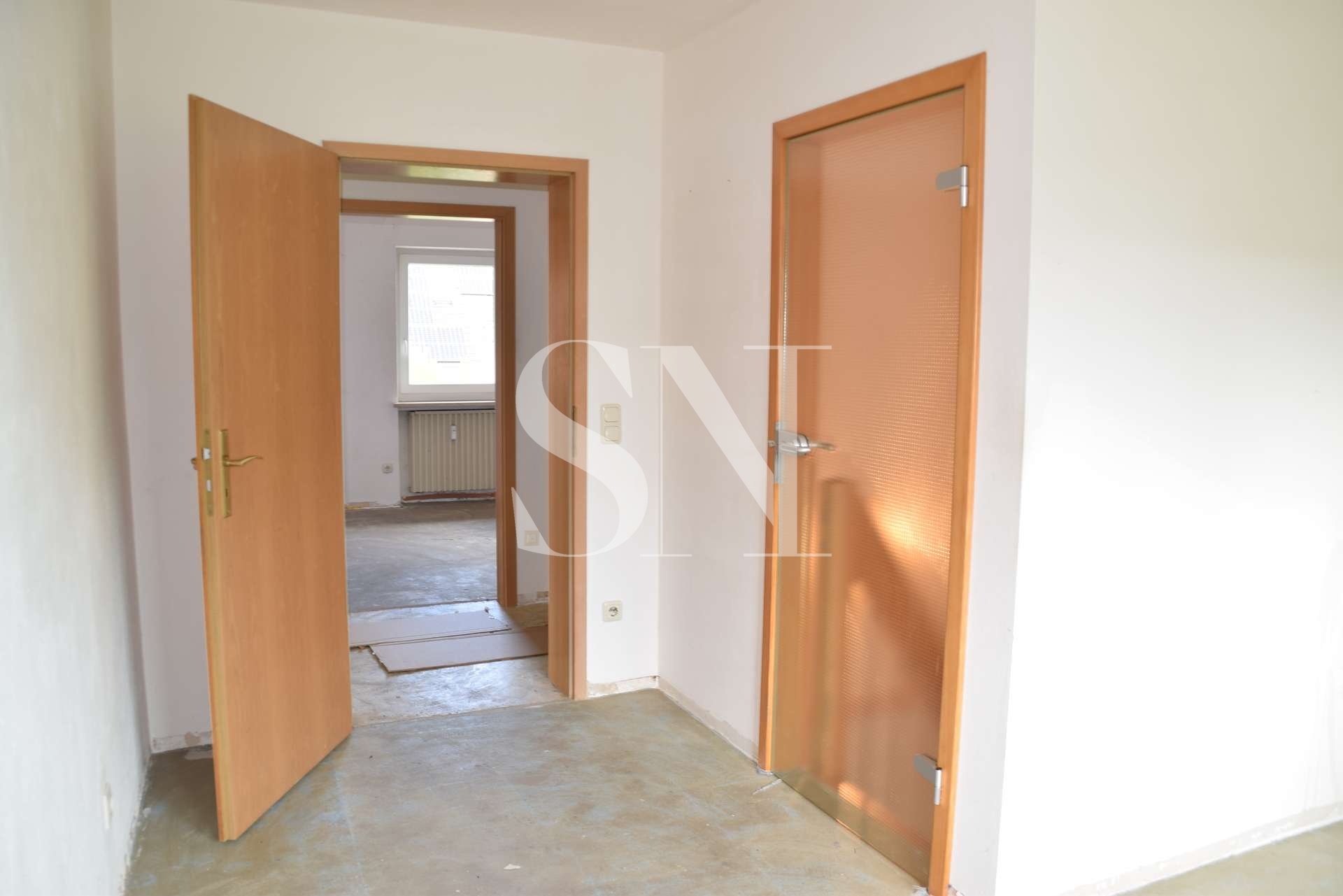 Zum Verkauf steht ein Doppelhaus mit einer Gesamtwohnfläche von ca. 223 qm auf einem Grundstück von ca. 850 m². Aufgeteilt ist das Wohnhaus in ursprünglich drei Wohneinheiten. Alle Wohnungen sind über das gemeinschaftliche Treppenhaus der linken DHH zugängig.